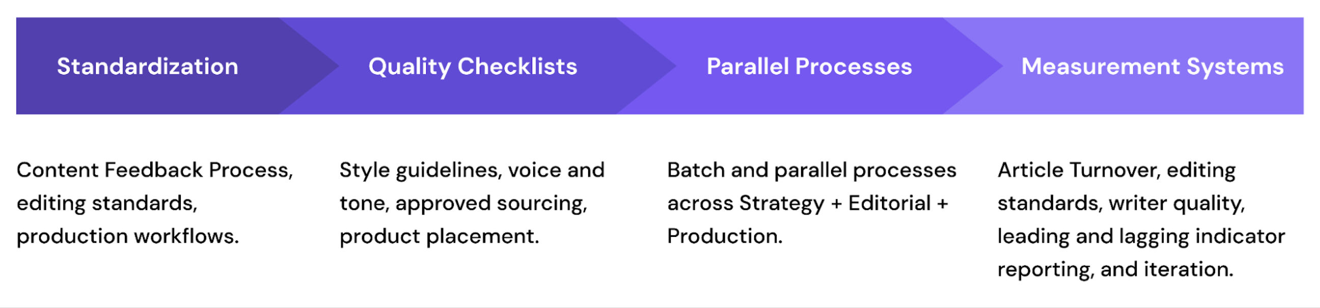 9. Standardization: Define a content feedback process that allows for both accuracy and efficiency. Then, turn haphazard content creation into a well-oiled production machine.