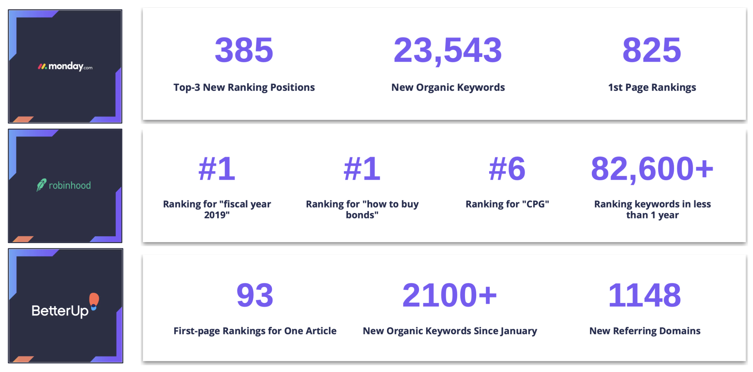 ✅ Worked with monday.com, pre-IPO, to rank for 140,000 new organic keywords